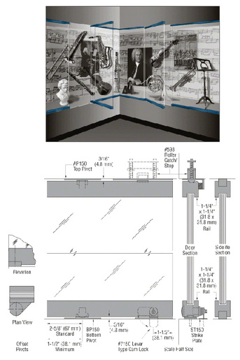 CRL-Blumcraft® 1301 Series Display Case Doors and Sidelites provide the most clear viewable area of any heavy glass display case system available today. Top and bottom rails measure only 1-1/4" x 1-1/4" (32 x 32 mm), and are prepped for pivots and locks. We offer two systems, the 1301-SM Series with Surface Mounted Pivots, and the 1301-CM Series with Continuous Mounting Bars that house the pivots, locks, and catches. Both are available with center or offset pivots.