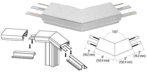 CRL 200 Series Horizontal Corners are fabricated, finished, powder coated and individually packaged. This interior slip-fit corner is designed for 135º corner conditions that allow for a hairline joint in the straight sections of the railing without having to miter cut angles in the field. Attach the Corners using CRL Cat. No. TEK1 Tek Screws.