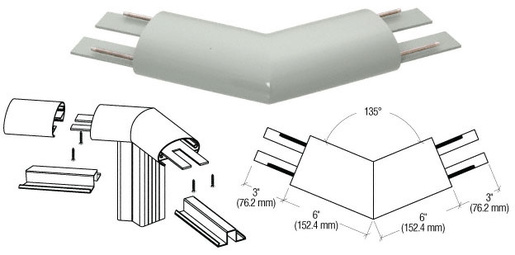 CRL 350X Series Horizontal Corners are fabricated, finished, powder coated and individually packaged. This interior slip-fit corner is designed for 135º corner conditions that allow for a hairline joint in the straight sections of the railing without having to miter cut angles in the field. Attach the Corners using CRL Cat. No. TEK1 Tek Screws.