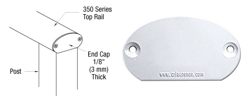 These CRL 350X Series End Caps are designed to screw into the raceways of the Top Rail. Shape of Cap matches contours of the 350X Series Top Rail. Countersunk to allow two Cat. No. ECS1 End Cap Screws to fit flush. End Cap Screws sold separately. Metal thickness is 1/8" (3 mm).