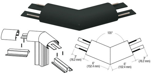 CRL 350X Series Horizontal Corners are fabricated, finished, powder coated and individually packaged. This interior slip-fit corner is designed for 135º corner conditions that allow for a hairline joint in the straight sections of the railing without having to miter cut angles in the field. Attach the Corners using CRL Cat. No. TEK1 Tek Screws.