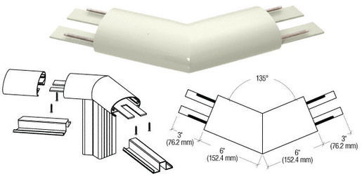 CRL 350X Series Horizontal Corners are fabricated, finished, powder coated and individually packaged. This interior slip-fit corner is designed for 135º corner conditions that allow for a hairline joint in the straight sections of the railing without having to miter cut angles in the field. Attach the Corners using CRL Cat. No. TEK1 Tek Screws.