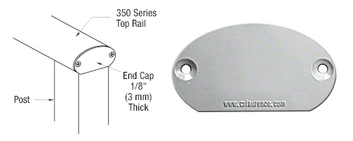These CRL 350X Series End Caps are designed to screw into the raceways of the Top Rail. Shape of Cap matches contours of the 350X Series Top Rail. Countersunk to allow two Cat. No. ECS1 End Cap Screws to fit flush. End Cap Screws sold separately. Metal thickness is 1/8" (3 mm).